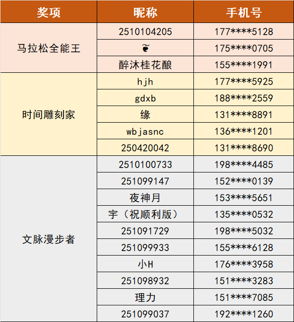 为鼓励各位读者的积极参与,本次活动在原定奖项的基础上,增设“文脉漫步者”奖10名,给予奖品和读者积分奖励。本次活动以阅读时长为主要依据,经综合评定,共选出18位获奖读者,现将获奖名单公布如下: