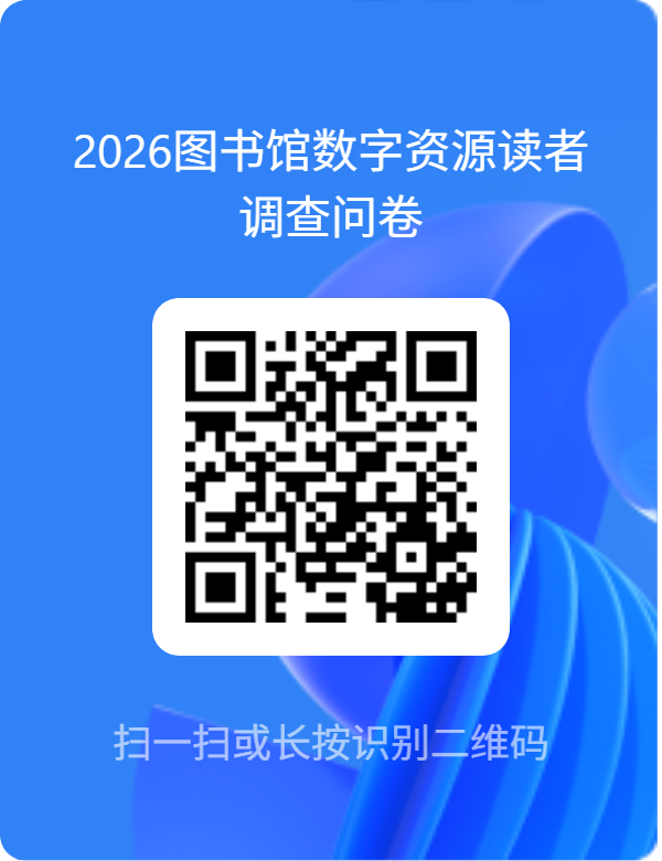 为更好提供数字资源服务,诚邀广大师生扫码参与“2026图书馆数字资源读者调查问卷”,助力图书馆服务优化升级。